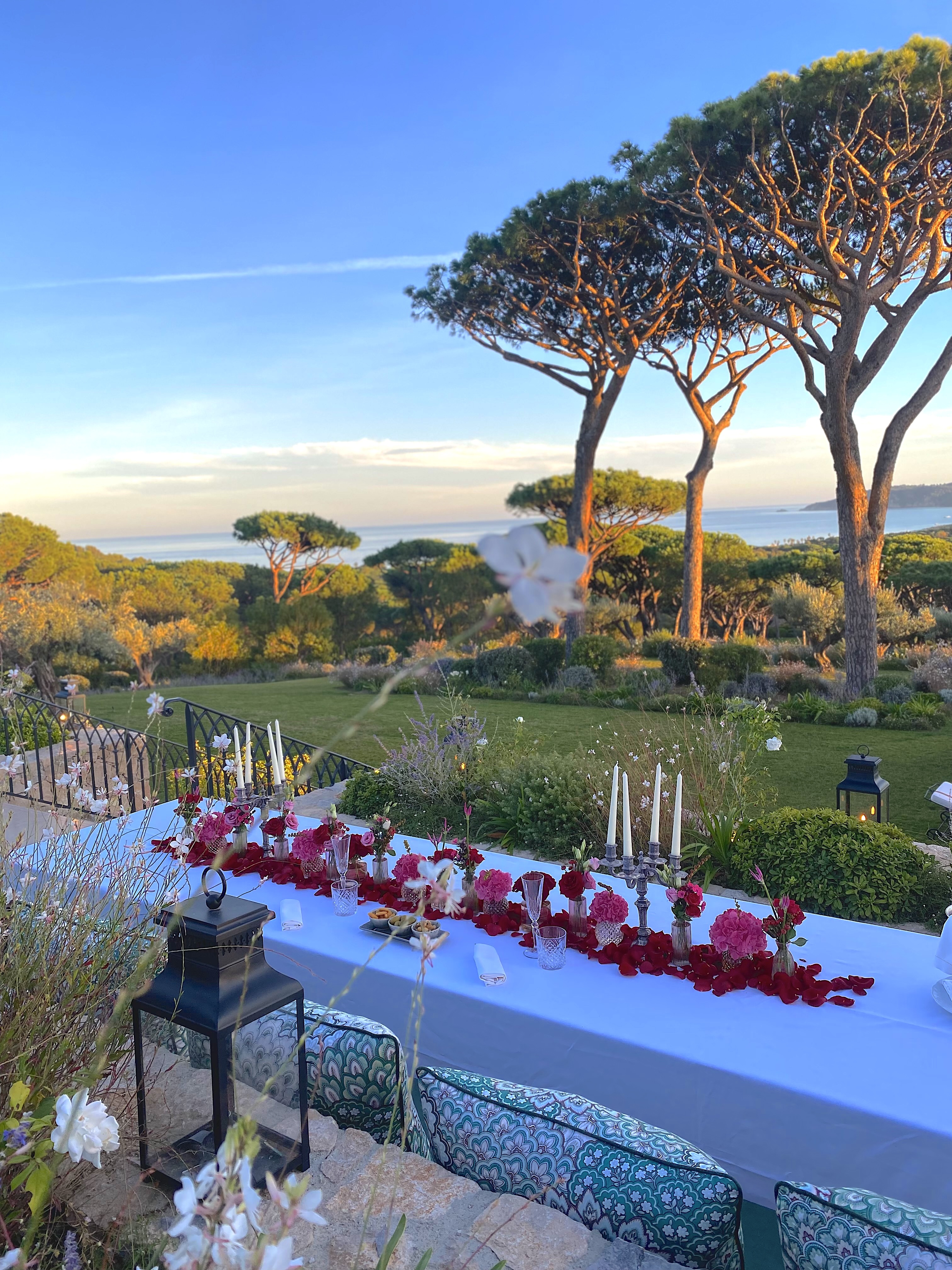 Choose between two distinct ambiances: a marble table nestled in the heart of the kitchen garden, surrounded by fragrant herbs and Mediterranean botanicals – perfect for a relaxed, al fresco meal. Or opt for our second table, set high above the Bay of Pampelonne, where breathtaking views of the iconic Côte d’Azur shoreline stretch out before you.