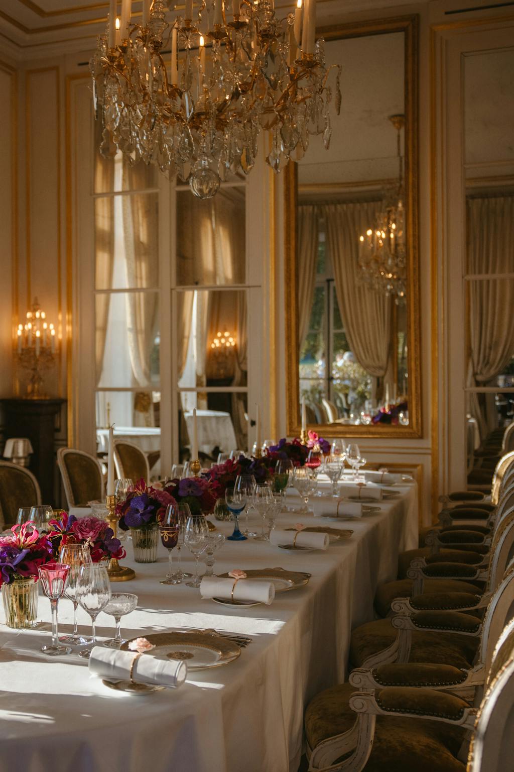 Original furniture, sourced from auctions and antique shops across Europe, was reinstated and meticulously restored. Lighting, though modern, emulates the soft glow of candlelight, conjuring up the atmospheric, soft-lit ambiance of the period. The result is nothing short of magic.