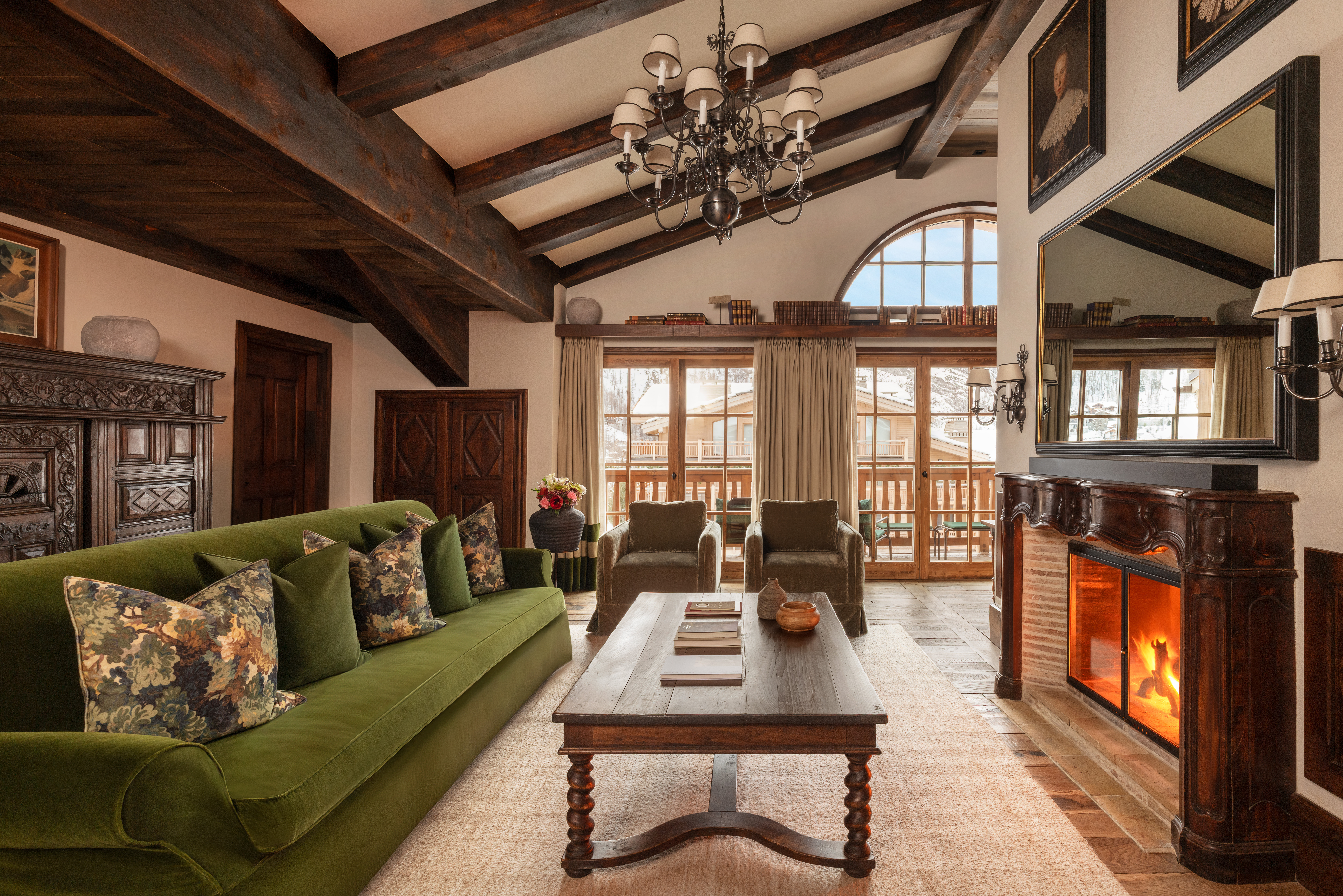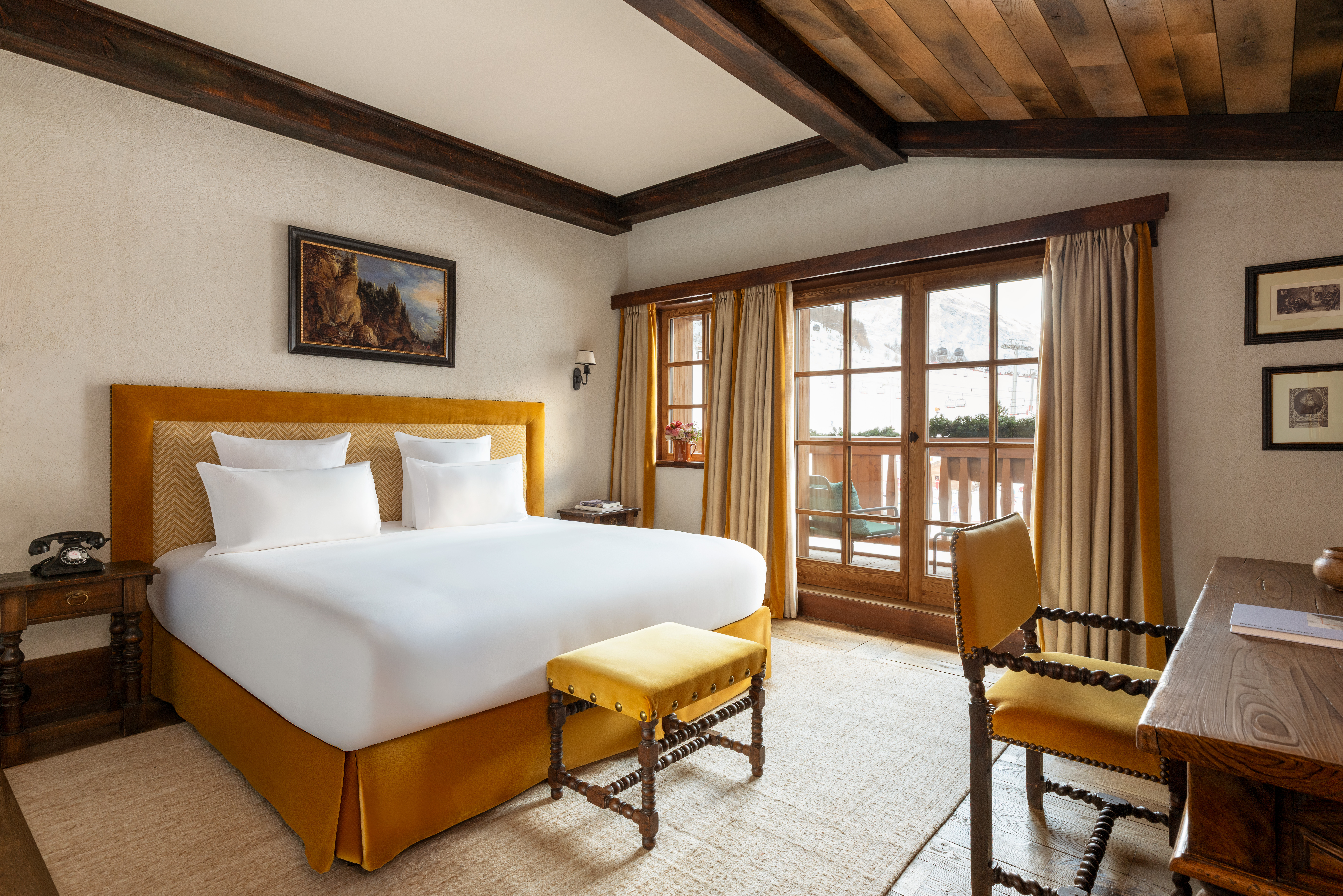 - Located on the top floor with a panoramic view overlooking the ski slopes and historical village