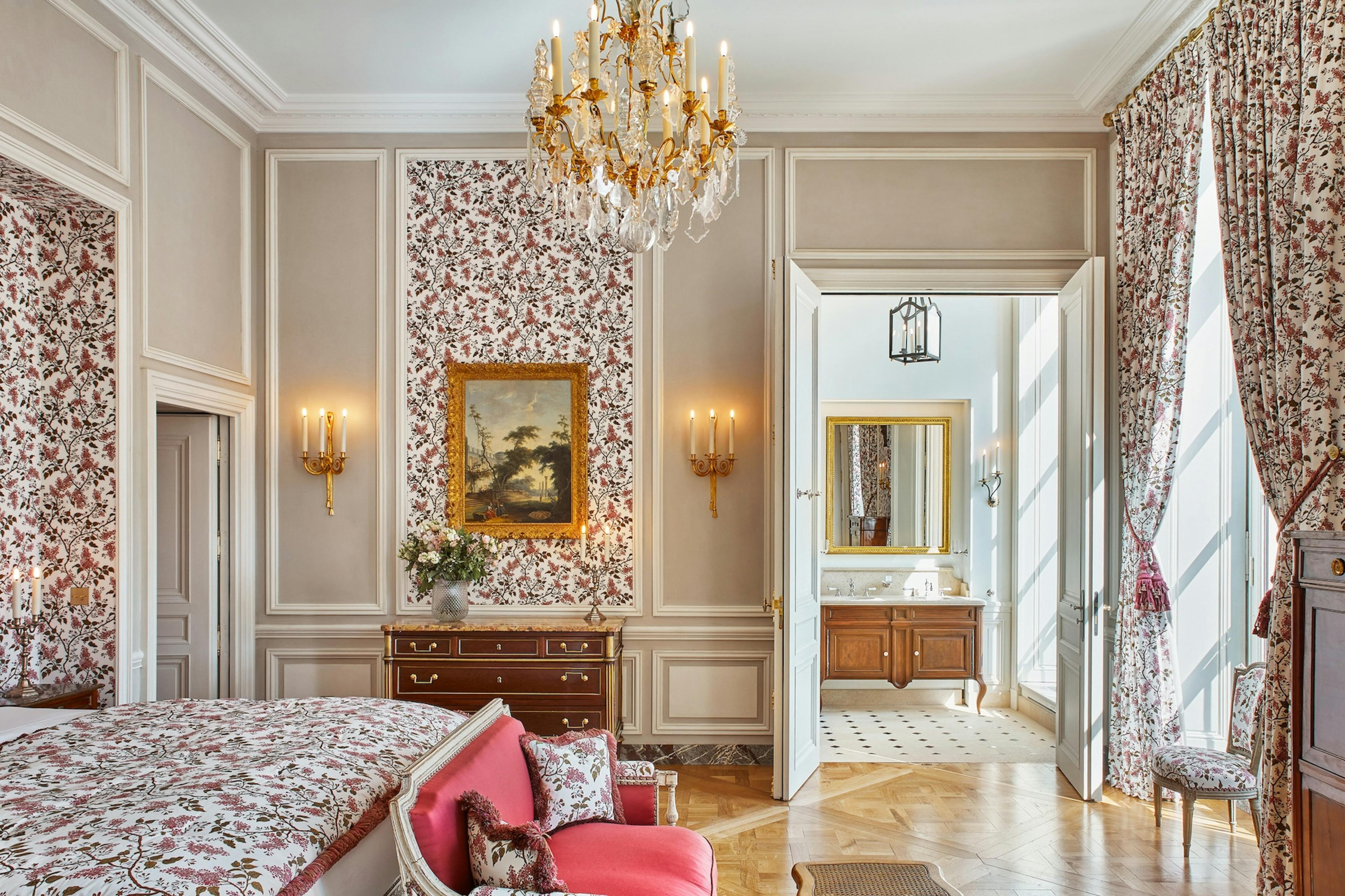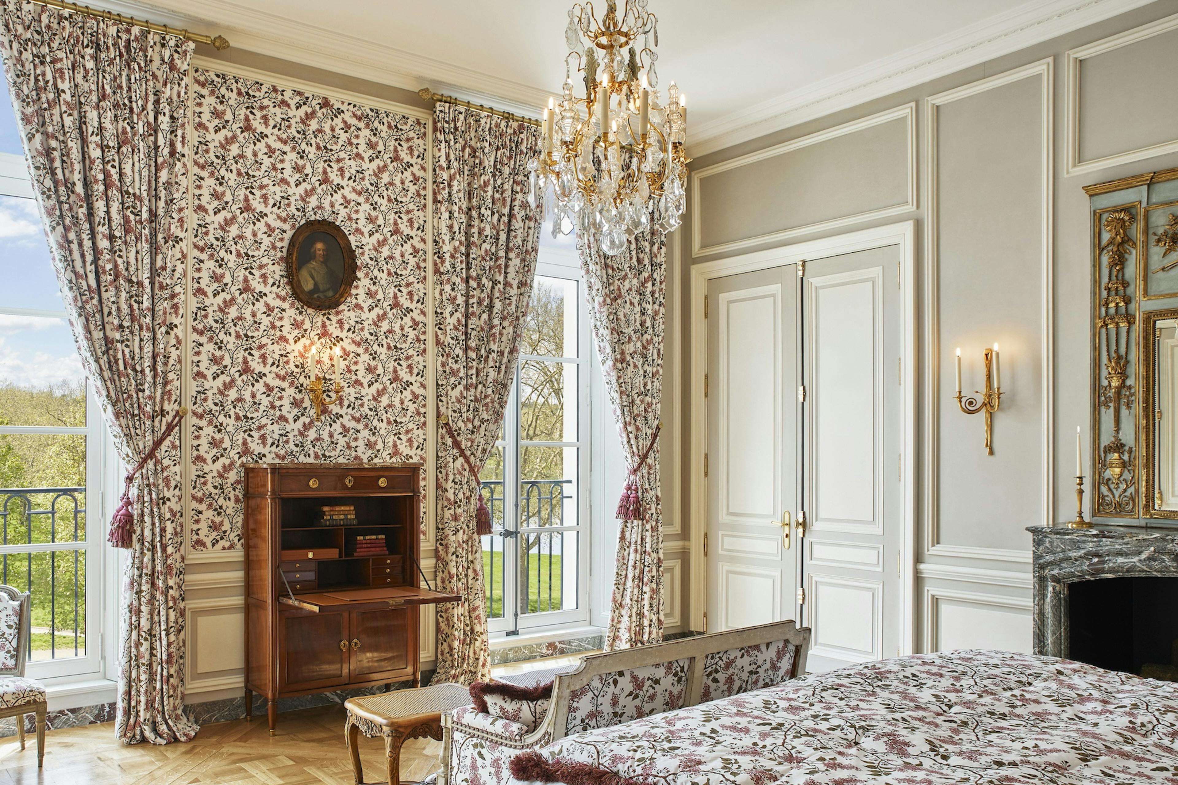 Spacieuse et lumineuse, cette Chambre pour deux personnes comprend de très hauts plafonds (de plus de quatre mètres de hauteur), un très grand lit et un magnifique parquet en dalle Versailles. Un dressing séparé est à disposition. Depuis cette Chambre, la vue sur la Pièce d’Eau des Suisses est sublime.