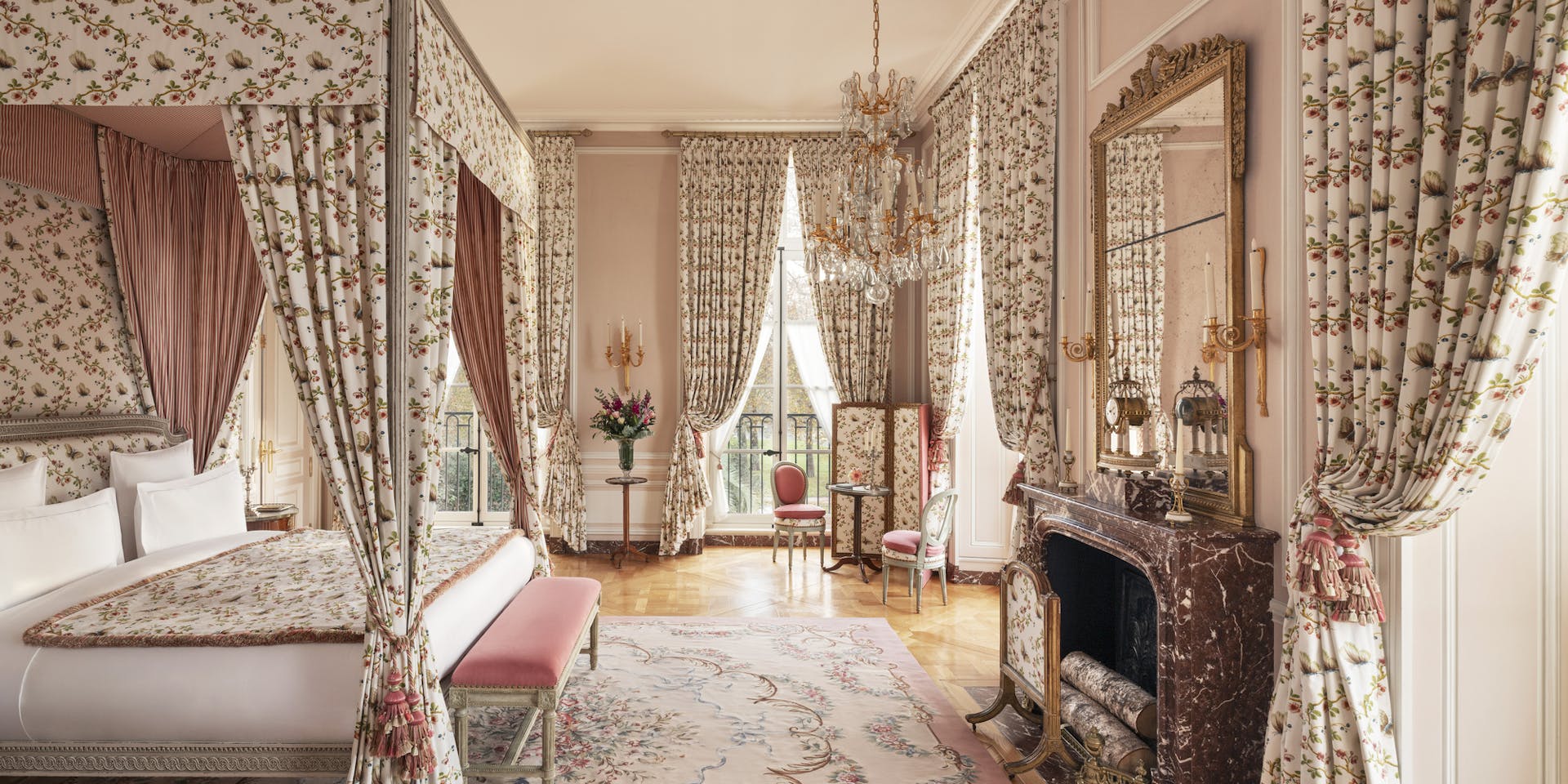 Des tissus raffinés aux meubles d’époque soigneusement sélectionnés, chaque détail crée une atmosphère luxueusement intime, où lustres, dorures et étoffes évoquent l’authenticité des lieux. Une destination exclusive pour s’offrir des instants d’exception, sur les traces de Marie-Antoinette, célèbre reine de France.