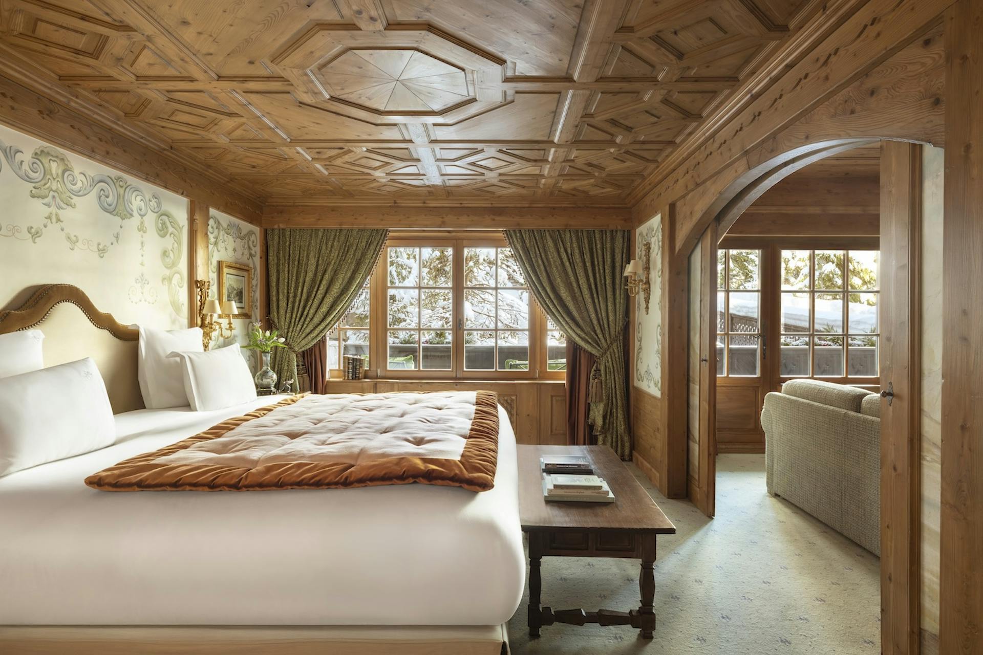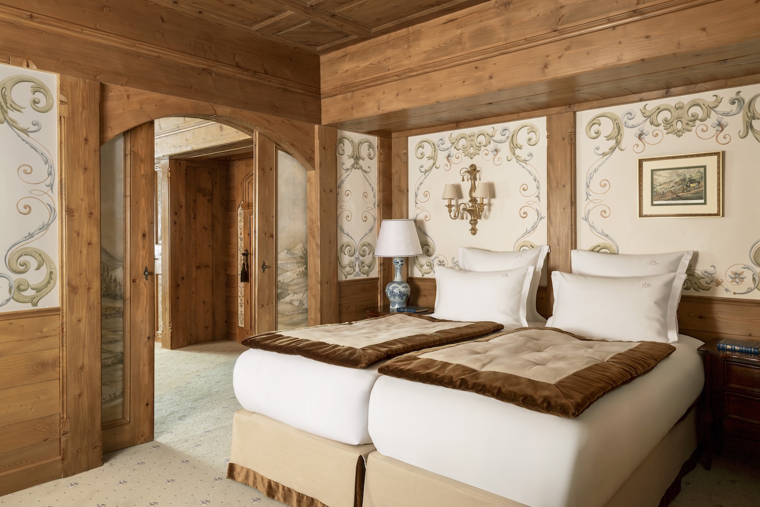 Dans une atmosphère élégante, réveillez-vous au rythme des flocons dans l’une de nos sublimes Suites ou Chambres de Palace en montage, pensées comme un cocon de douceur. Vous apprécierez son décor onirique avec son plafond à caisson, ses teintes pastel et ses somptueuses fresques aux envolées lyriques. Une chambre d’hôtel de luxe raffinée, pensée dans les moindres détails pour vous offrir une immersion voluptueuse et passer d’agréables vacances dans la célèbre station des 3 Vallées à Courchevel.