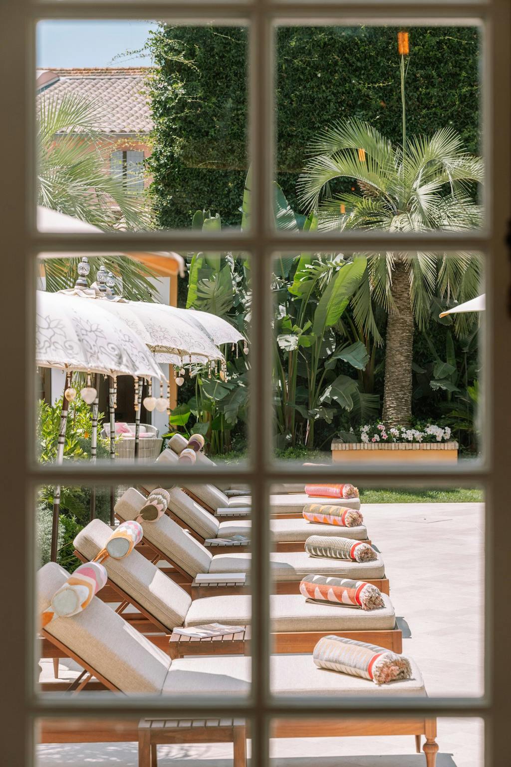 À l'ombre des palmiers et des oliviers, le jardin méditerrannéen offre une atmosphère intimiste au cœur de cet hôtel à Saint-Tropez. Détendez-vous et profitez du soleil, confortablement installé dans nos fauteuils et transats au bord de la piscine.