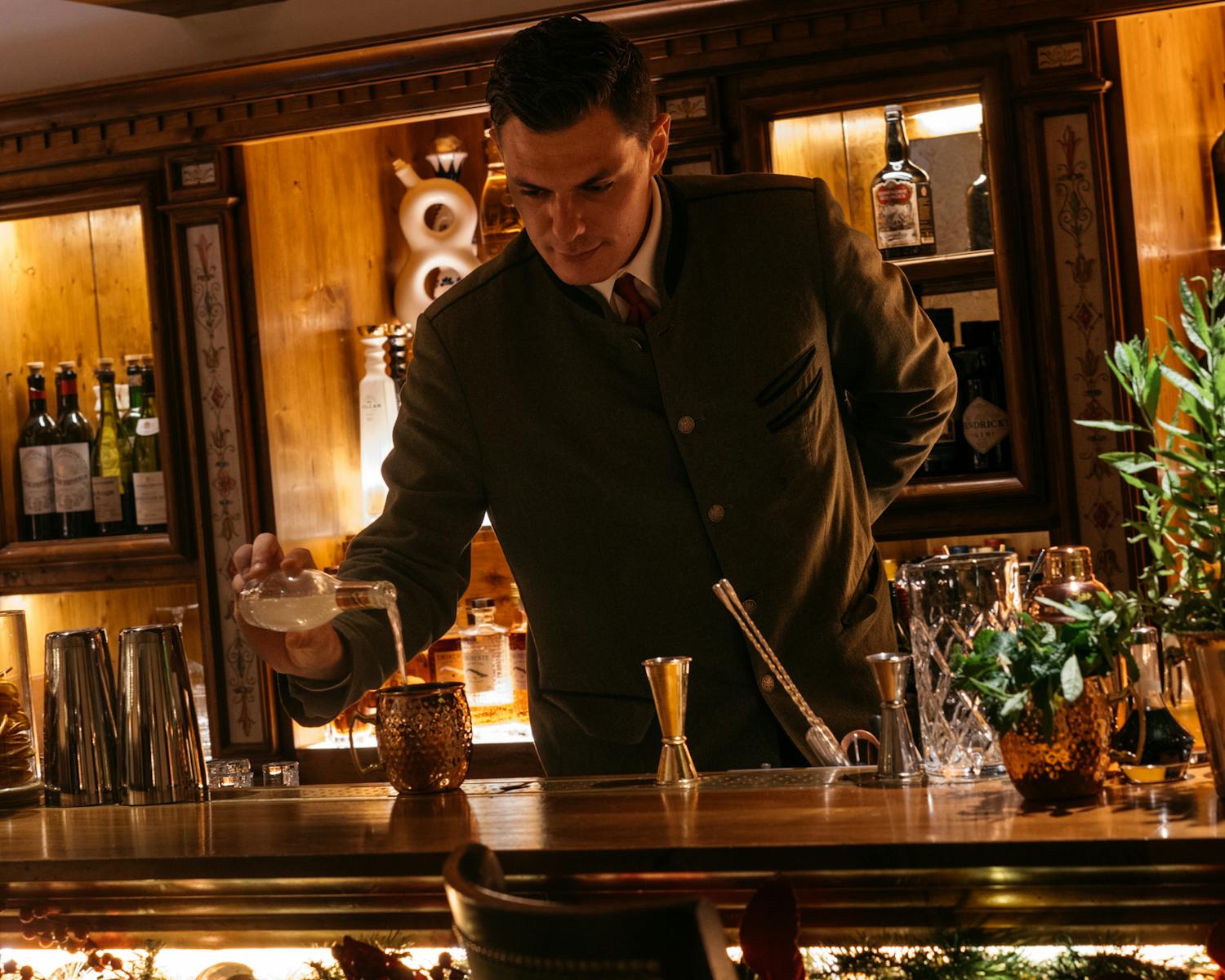 Al calar della sera, il Bar delle Airelles a Courchevel 1850 vibra al ritmo degli shaker. Appoggiati al bancone o comodamente seduti in una poltrona morbida, assaporate uno dei cocktail della Maison. Scegliete tra i classici come il Moscow Mule o il Gin Tonic, oppure lasciatevi tentare da una selezione di creazioni firmate.