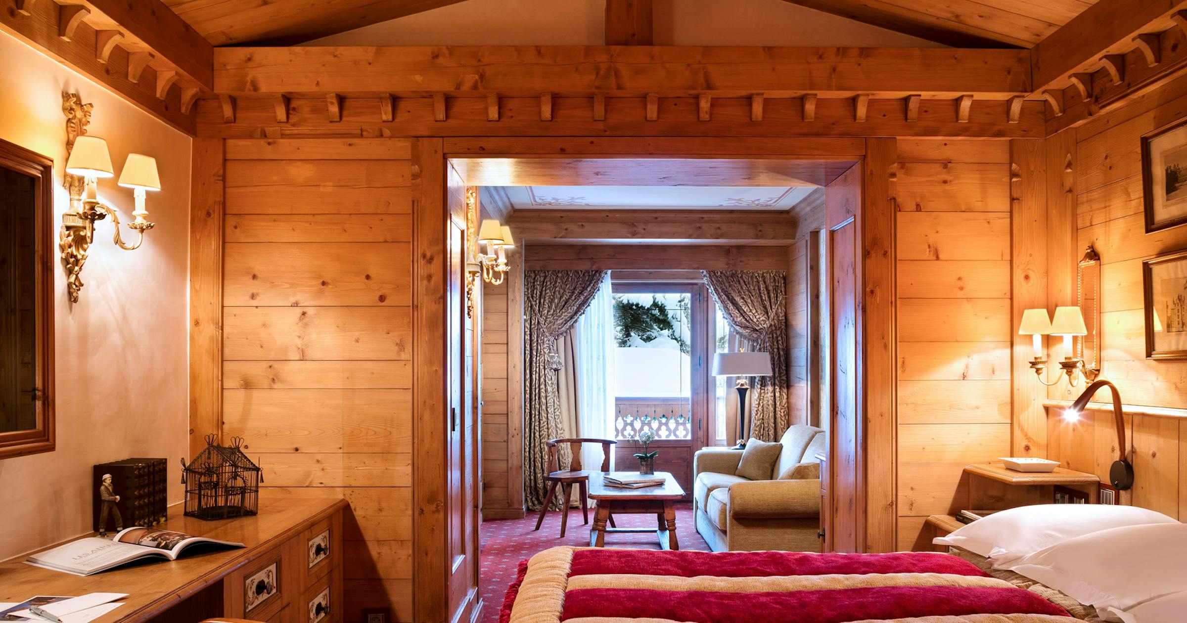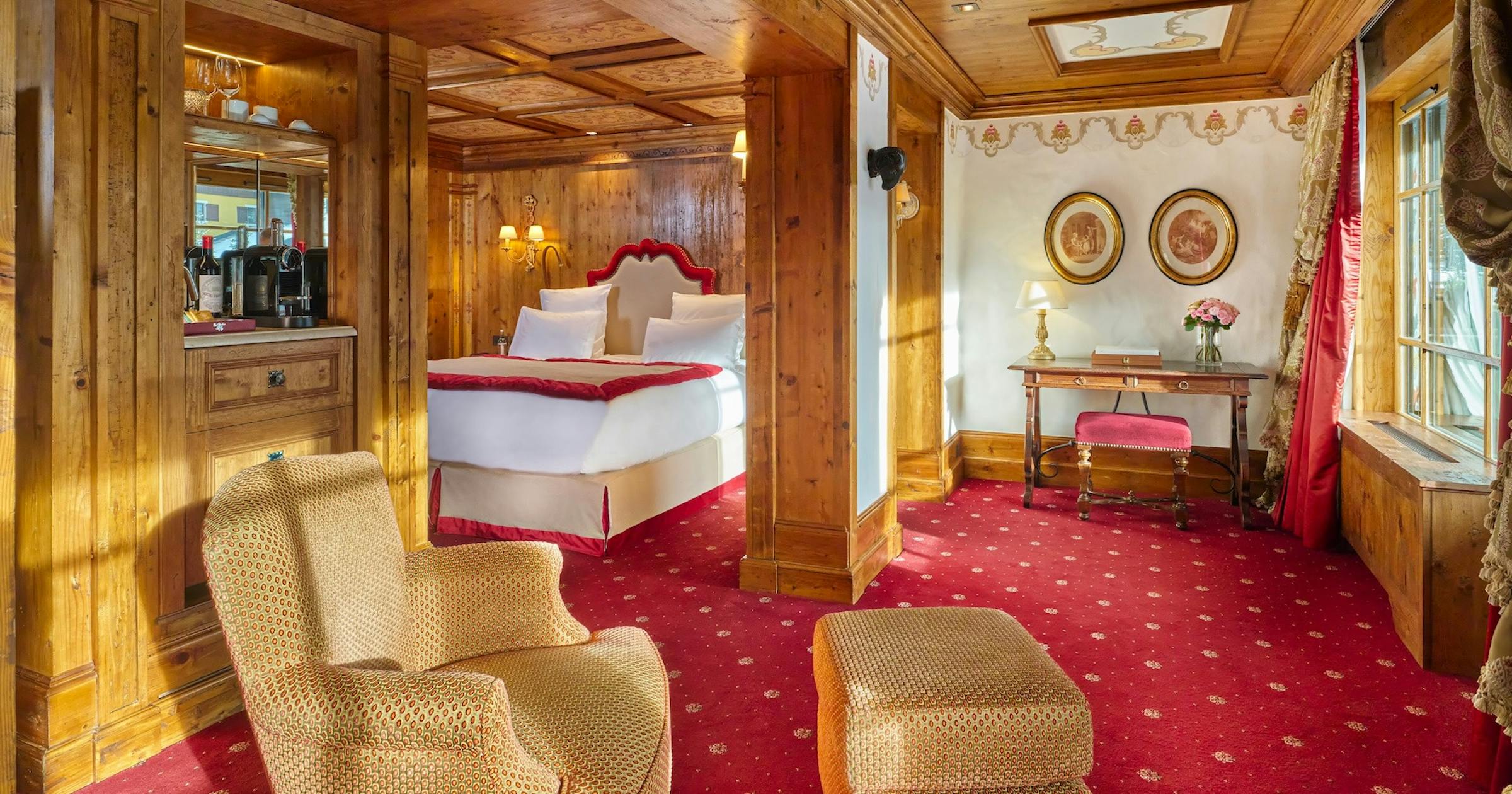 Situata sul lato valle, la Junior Suite Prestige Valle dispone di tre lussuosi spazi abitativi distinti che invitano a ritrovarsi in famiglia o con gli amici. La vista sui pini del Jardin Alpin può essere ammirata dalla grande camera, dal salotto o dalla sala da pranzo. La Suite è dotata di una doccia hammam e di un bagno per soddisfare tutte le esigenze di benessere.